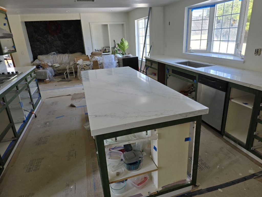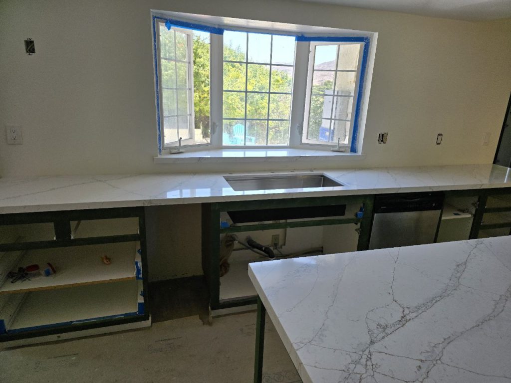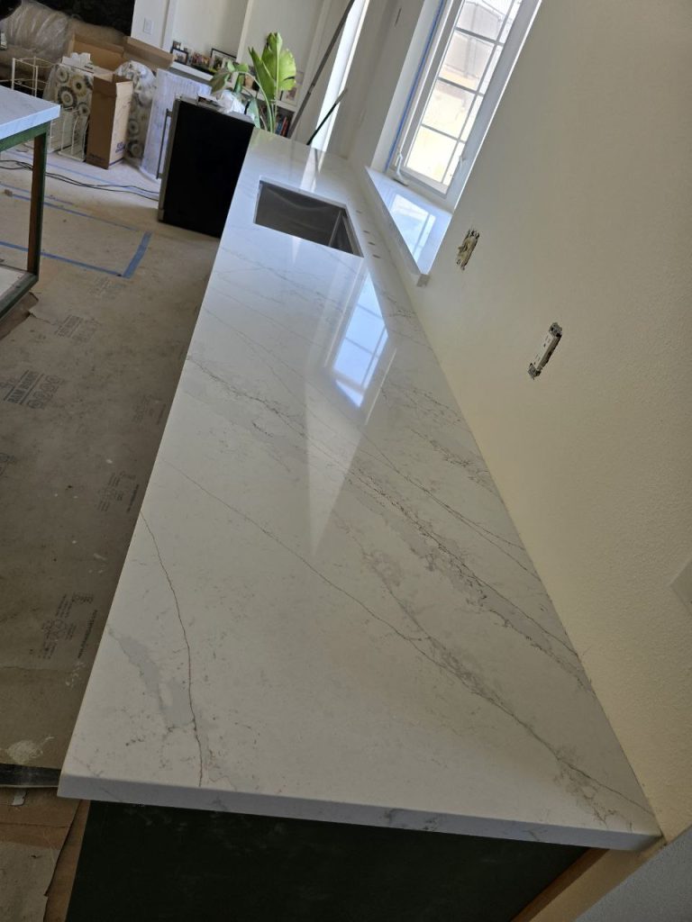 Quartz kitchen countertop, Barbara Dr, Santa Rosa Valley Status: Completed MSI Calacatta Viraldi slab for kitchen countertop. ← Quartzite kitchen countertop, Calle Montilla, Santa Barbara Quartz vanity top, Woodburn Ave, Westlake Village →